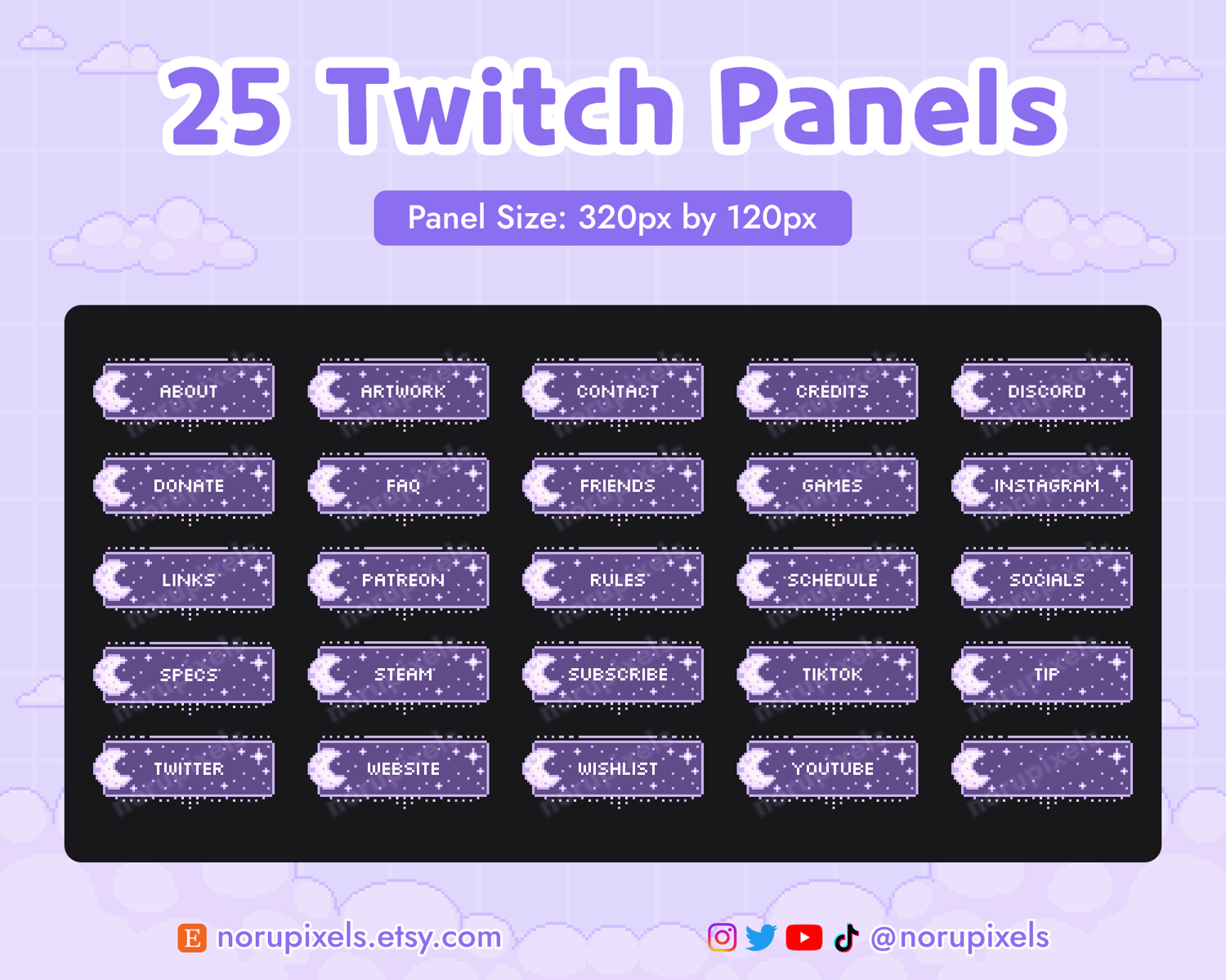 - 25 Twitch panels (each panel size: 320 x 120px)
