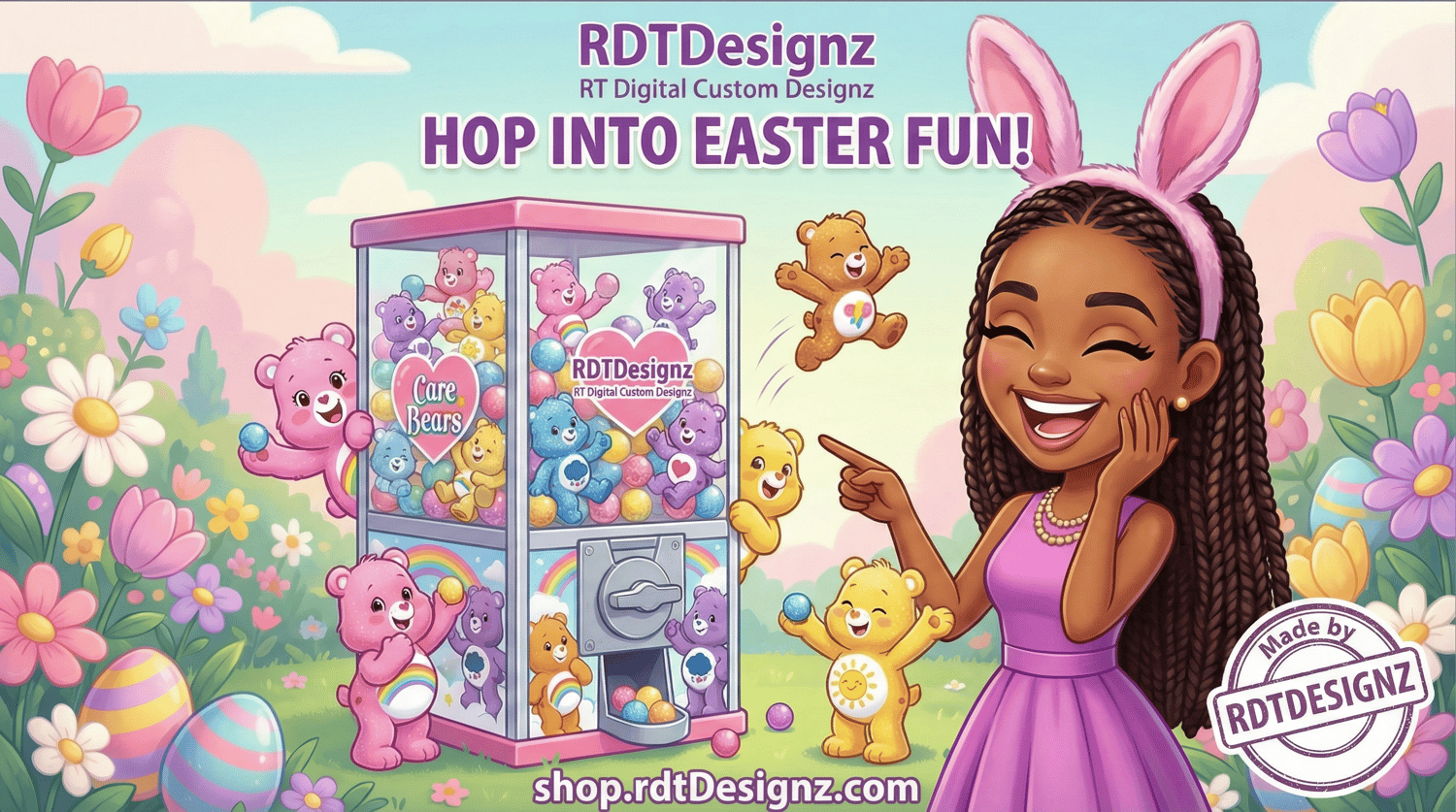 Bring a burst of color and joy to your projects with this editable Gumball Machine Template, featuring the beloved Care Bears! Perfect for birthdays, party decorations, social media graphics, or small business promotions, this playful template combines retro charm with modern customization.