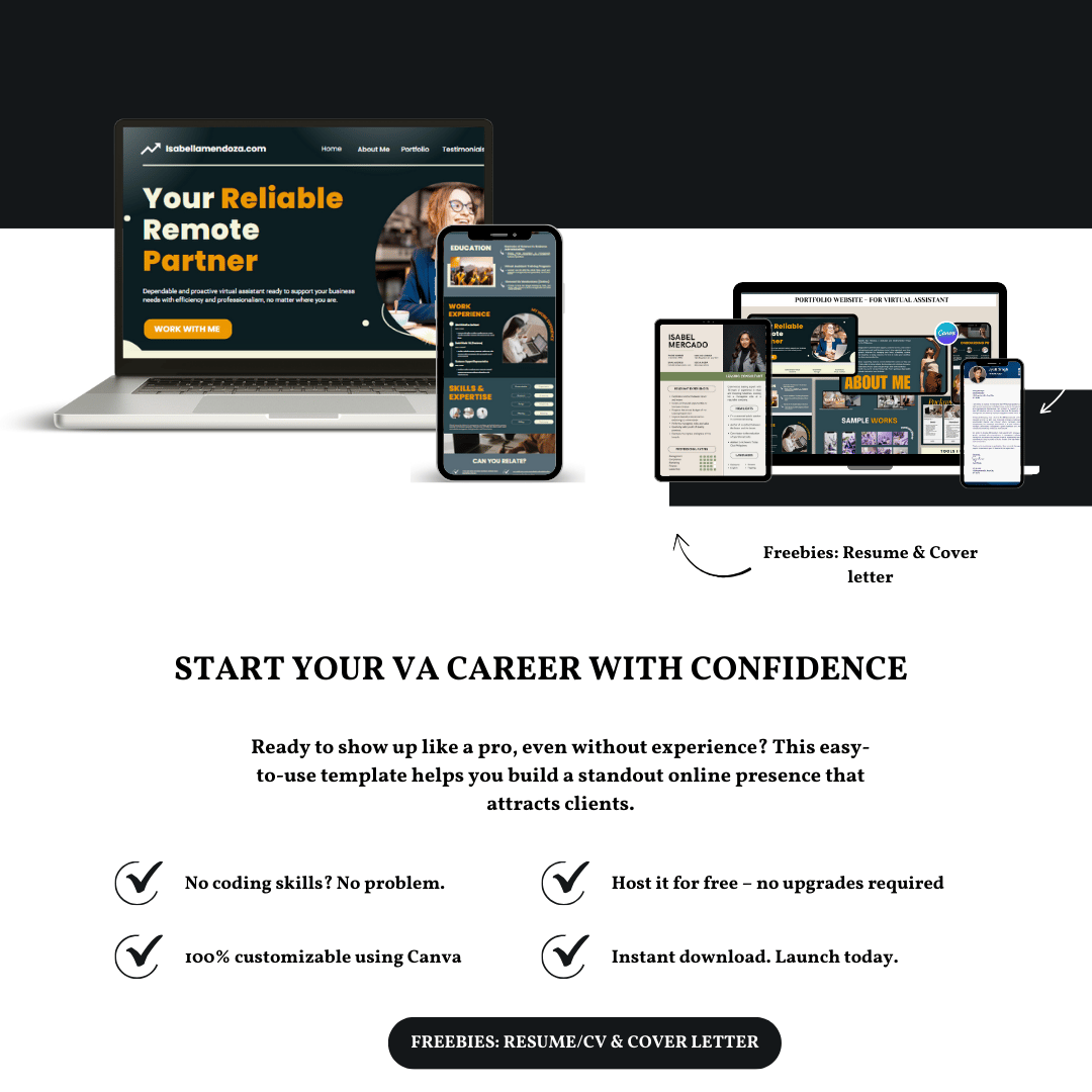 Start strong with this clean, easy-to-edit Canva website template perfect for beginner Virtual Assistants and Freelancers!