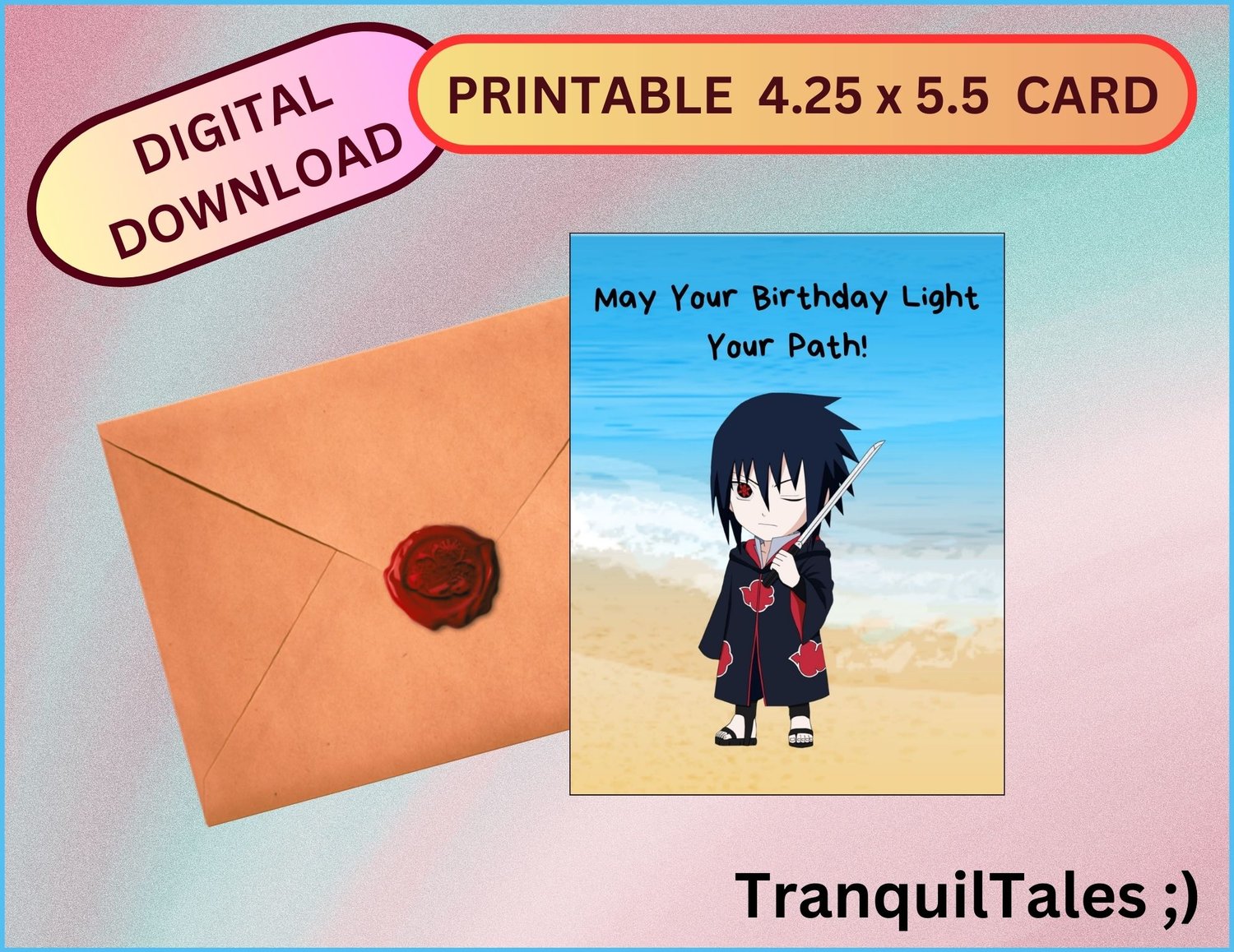UCHIHA SASUKE - BIRTHDAY CARD - AKATSUKI - NARUTO SHIPPUDDEN - NARUTO UZUMAKI - 4.25" x 5.5" - PDF FILE