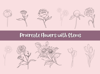 The set includes carnations, peonies, daisies, foliage, and leaves, all of which can be used to create stunning botanical compositions.