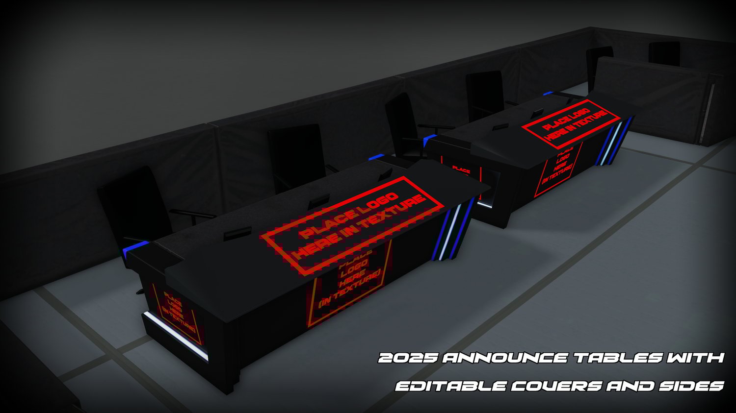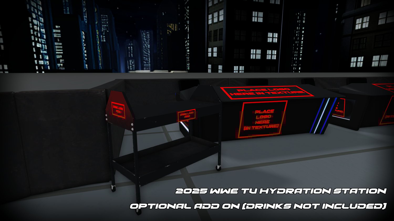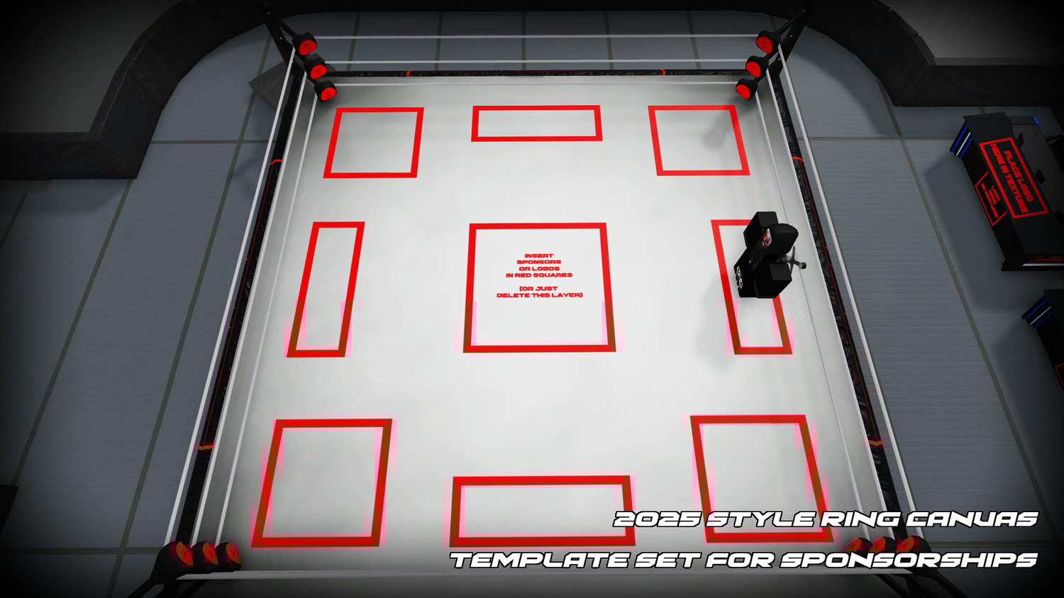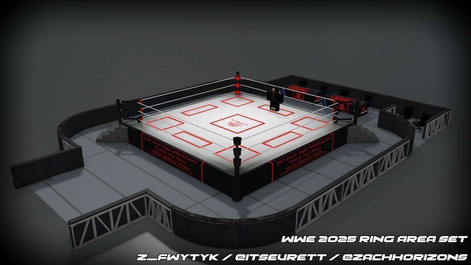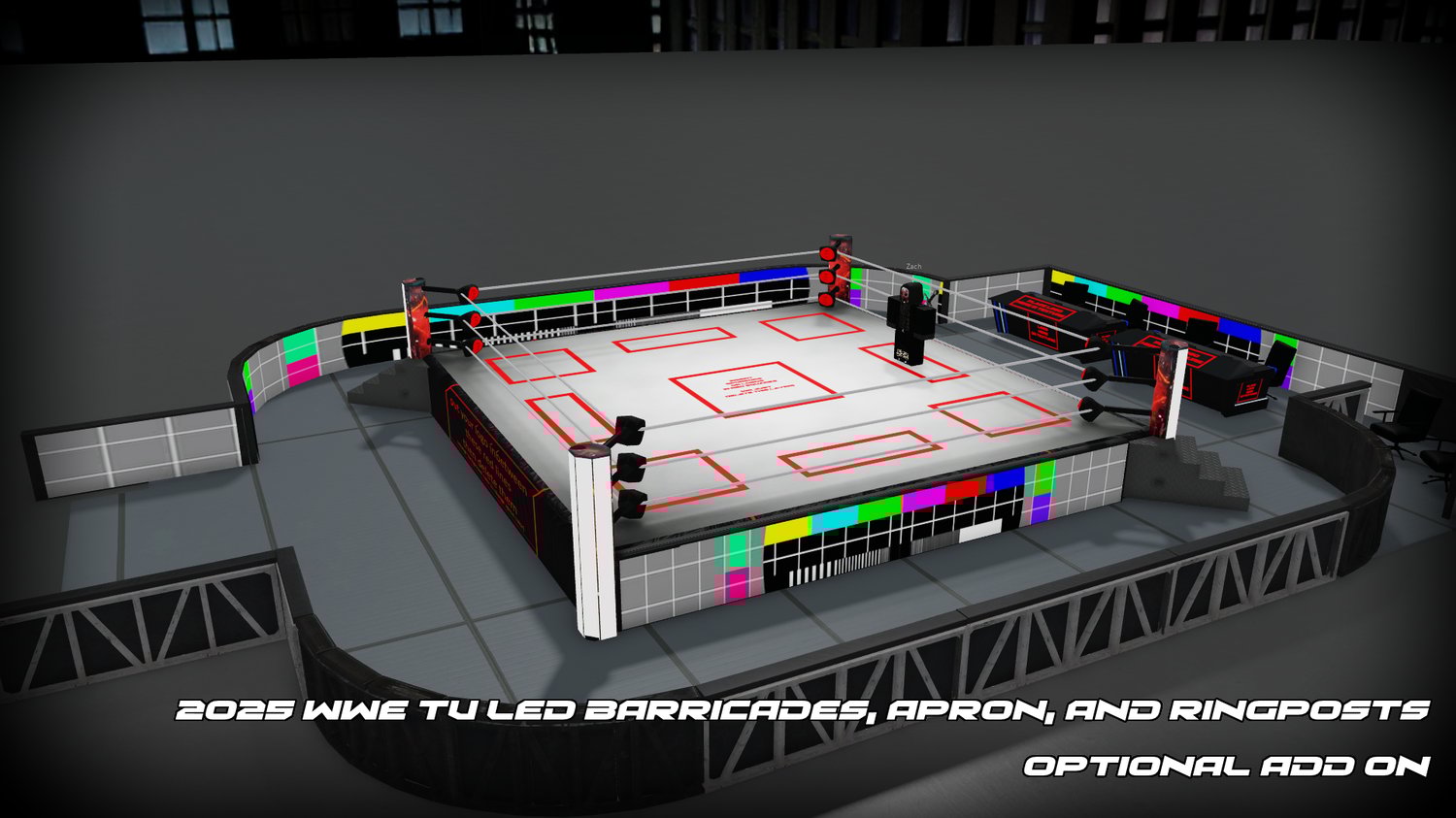 Includes customizable ring aprons, mats, modern barricades and the new 2025 announce tables (also customizable).