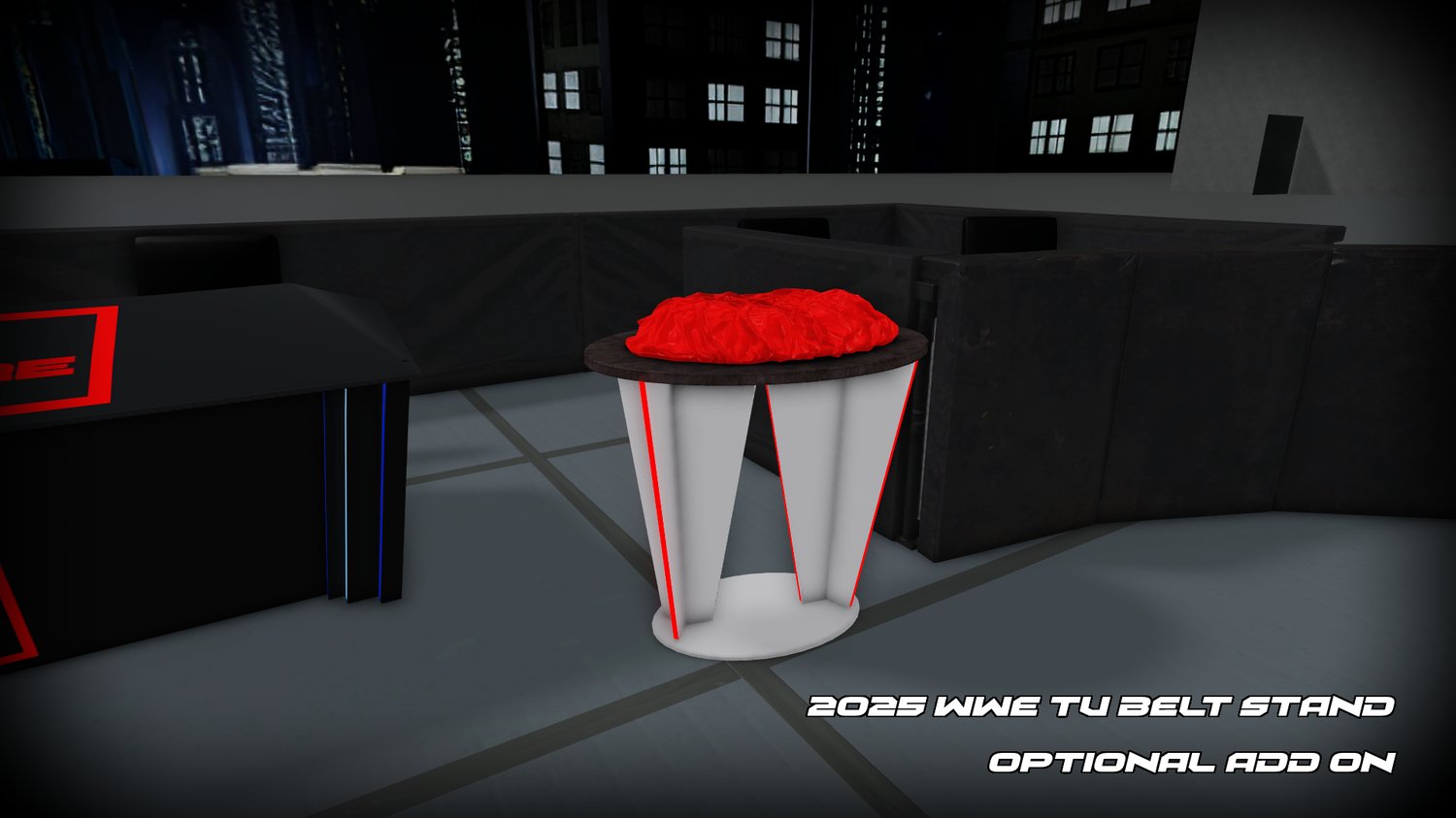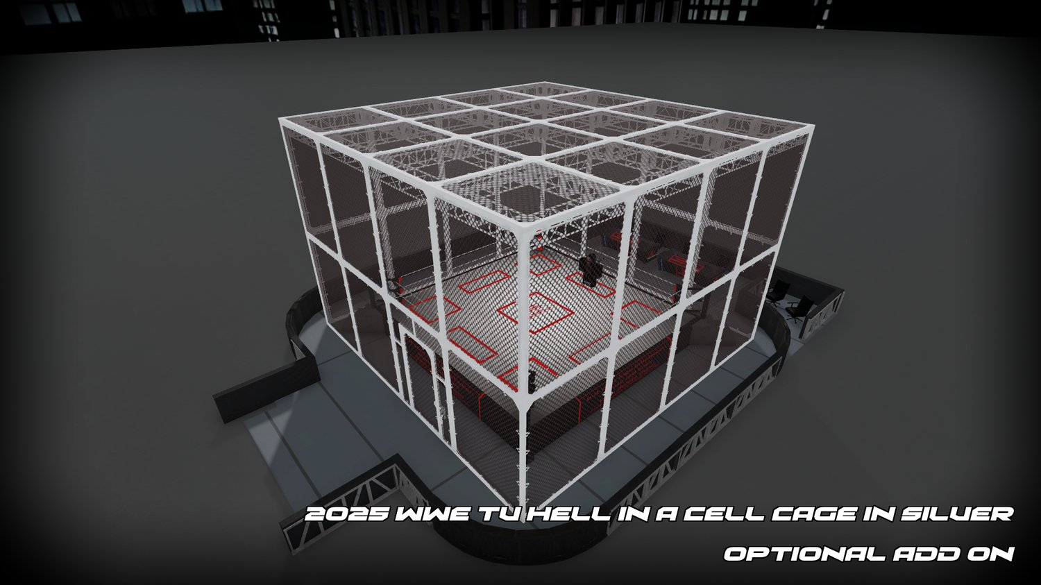 Also features additional add-ons, a proper Belt Stand, Hydration Station (PRIME Station), LED Ring Posts, Apron, and Barricades, as well as the Hell in a Cell Cage in Silver.