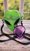 👽 The QUINTALIEN crossbody and wristlet are a set of small alien shaped bags (MICRO & MILLI) with two appliquéd eyes on the front. They can be used by anyone regardless of gender and age. They feature a fully lined interior as well as a main zipper that closes it at the top, down to the sides. MICRO can store a lot of items and has a zipper pocket at the back for smaller items while MILLI can store items like coins, lip balm, keys and any little item you would like to keep within easy reach