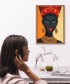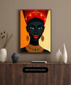 This is a digital art piece, likely intended to be printed as a poster or art print. It depicts a stylized portrait of a woman with a distinctive headdress and jewelry, in a vibrant and bold color palette. The style leans towards modern digital illustration with elements that might be inspired by African art or depictions of royalty.