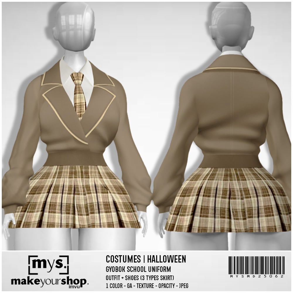 Outfit + Shoes: Top-1 color and Skirt + Tie – 3 colors