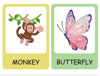 - When the music stops, each child must identify or imitate the flashcard they are closest to on the card.