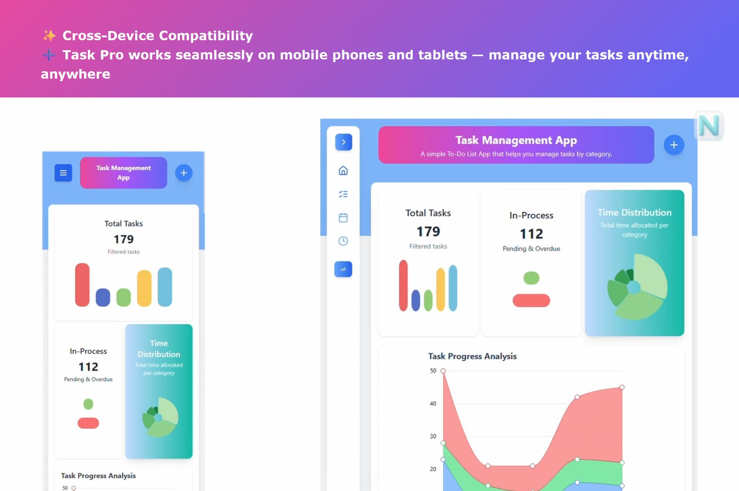 🔹 Clean Source Code – Built with React & Tailwind CSS, highly structured, easy to customize and extend for any workflow or UI requirement.