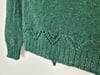 We cast on stitches at the shoulders and work down the upper back working short rows at the shoulders and armhole shaping, as well as knitting a gorgeous lace design with cute nupps as we go. Stitches are picked up at each shoulder for the fronts where we work shaping to match the back, then we join all stitches at the underarms and work down to the hem. Increases are worked at the inner edge of both fronts for a little extra cosiness! Stitches are picked up around the inside edge and worked in neat ribbing. Finally, we pick up stitches around both armholes and work sleeves down to the cuffs.