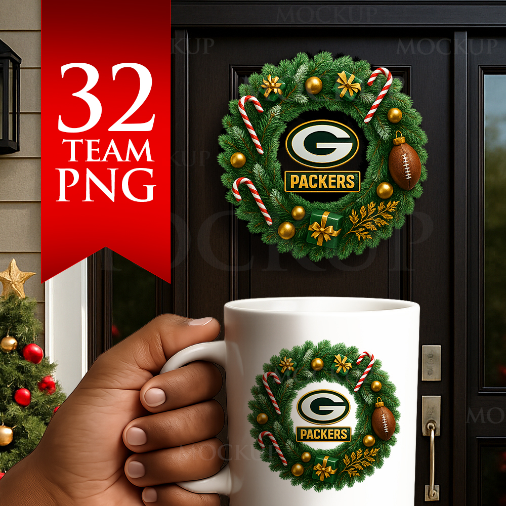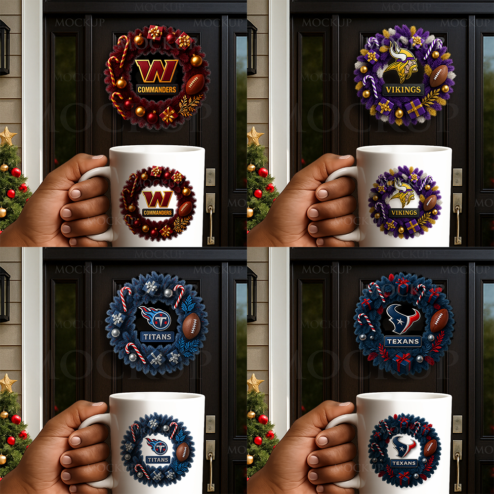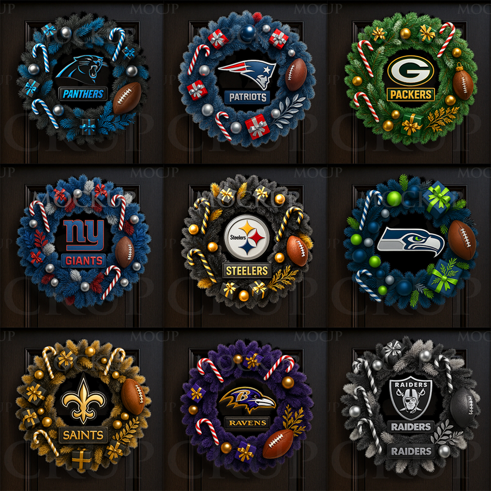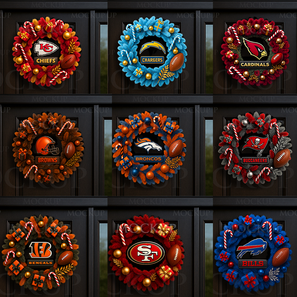Each wreath was created with realistic textures, premium composition, and a team-inspired color palette. Perfect for customizing holiday products such as: