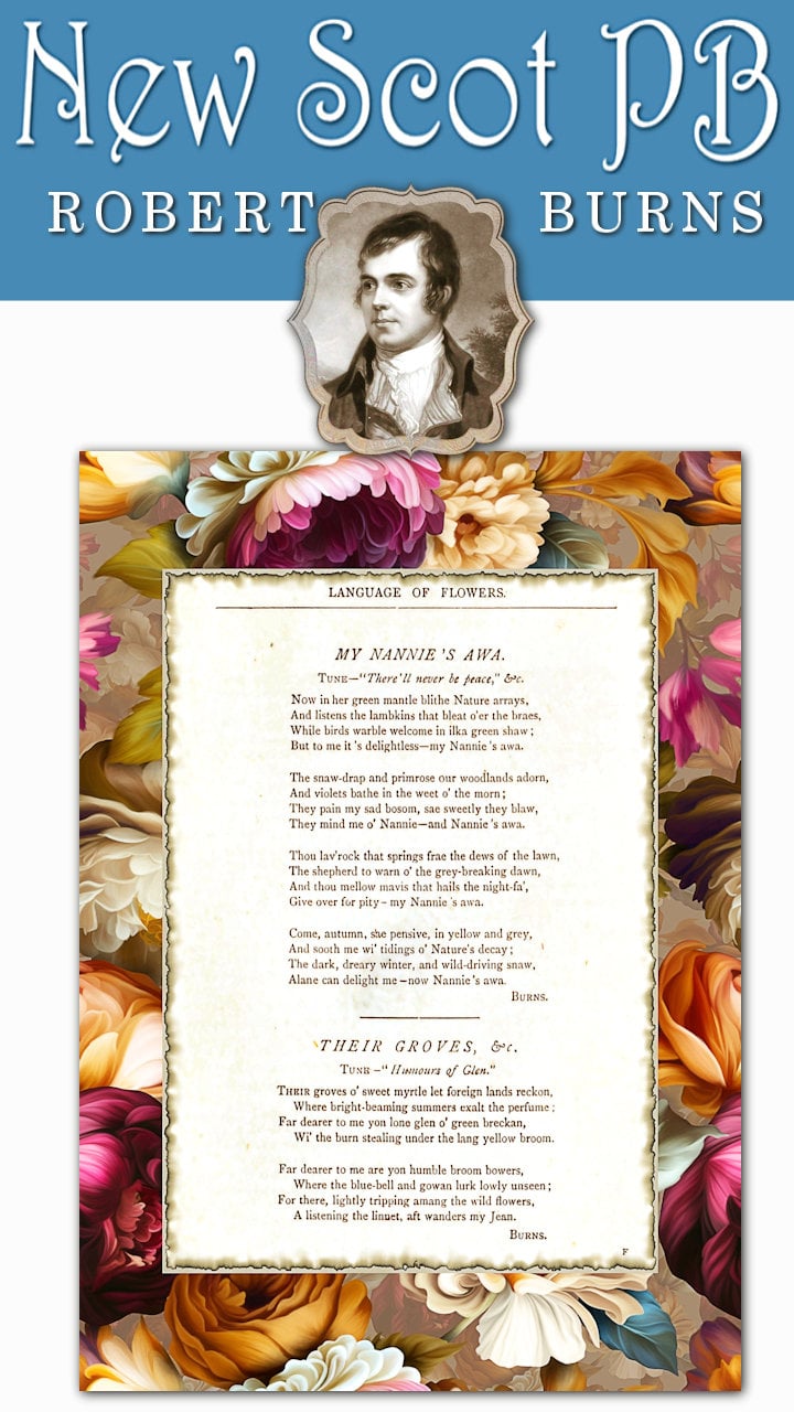 20 years ao, I bought a very small vintage book printed in 1884 titled “The Language of Flowers” with illustrations by Kate Greenaway. I scanned many of the illustrations and also some pages at the rear of the book which, surprisingly, had lots of poetry. This included poetry by Robert Burns which I have scanned and digitally enhanced. Some pages have poems by other well known poets.