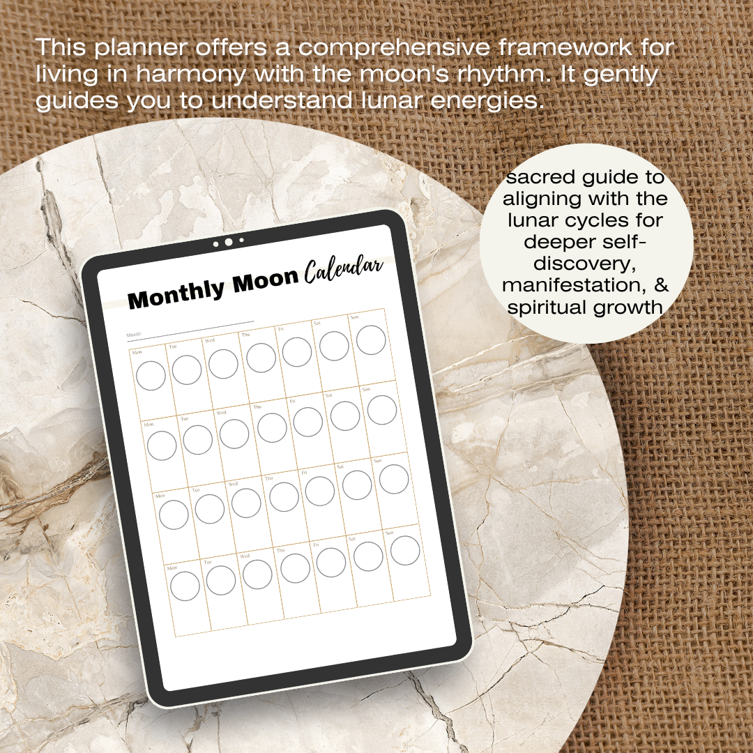 π§ Why it works: This planner offers a comprehensive framework for living in harmony with the moon's rhythm. It gently guides you to understand lunar energies, practice potent manifestation techniques, and cultivate mindfulness and clarity through purposeful reflection β empowering you to manifest your intentions and live a more aligned life.