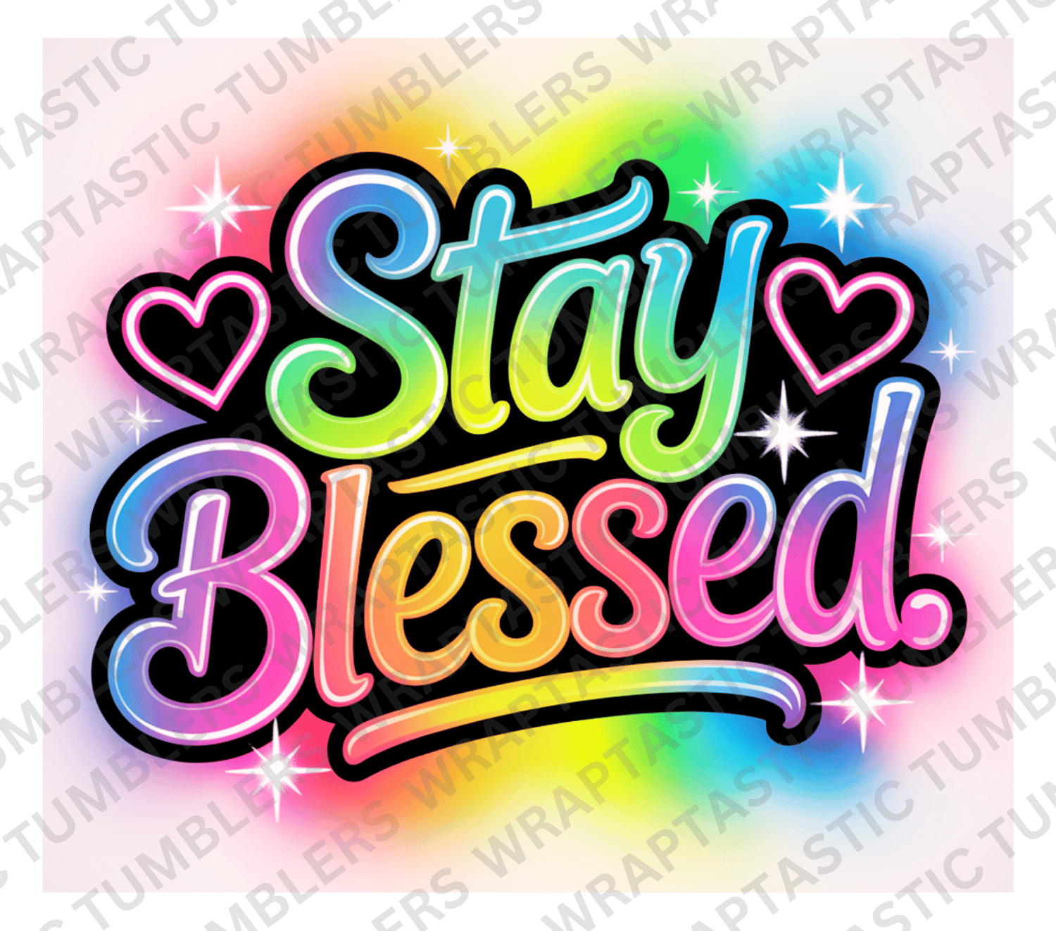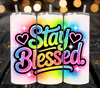 Stay Blessed Rainbow Tumbler Wrap PNG, Inspirational Sublimation Design, Positive Quote Shirt Mug Craft Digital Download Uplifting Gift
