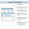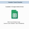 Prepare for your next adventure with ease using our Vacation Travel Checklist. This all-in-one template is designed to streamline your packing process and ensure you have everything you need for a smooth journey. Don't let the stress of packing weigh you down—get our Travel Checklist Google Sheets template today and make your travels a breeze!