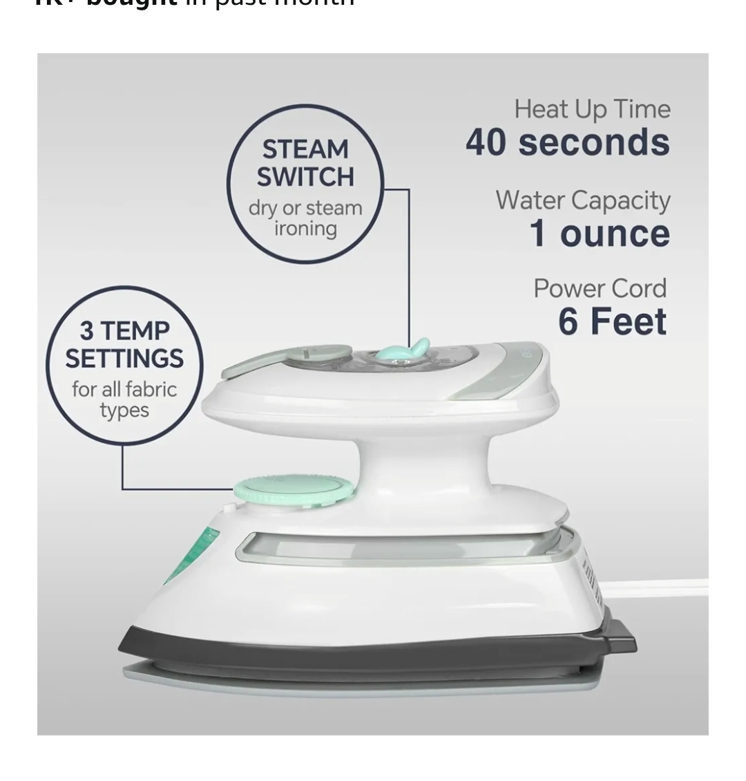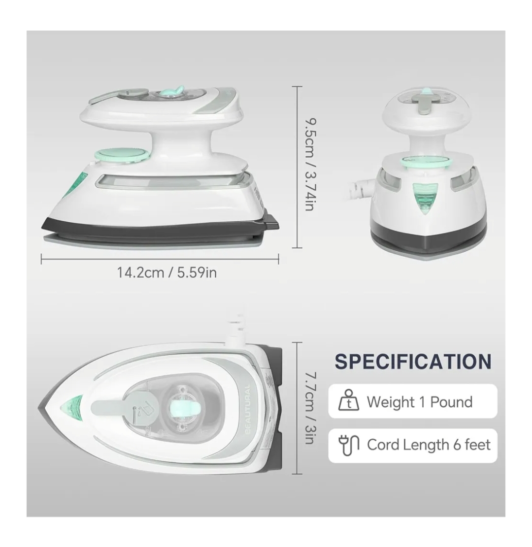 The nonstick soleplate glides effortlessly over fabrics, while 5 steam outlets ensure smooth, continuous steam; A 6-foot power cord offers extended reachability for easy use