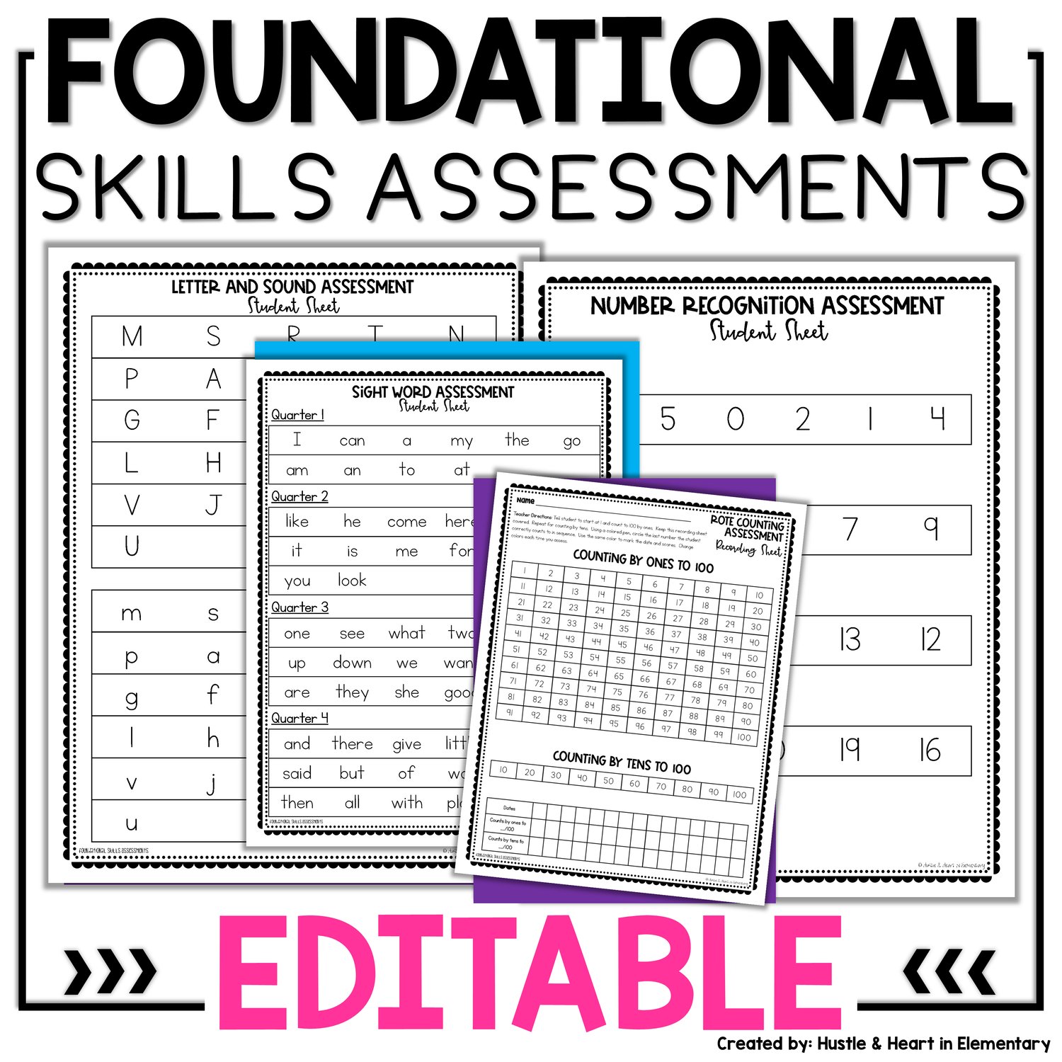 Kindergarten Assessments EDITABLE | ELA and Math