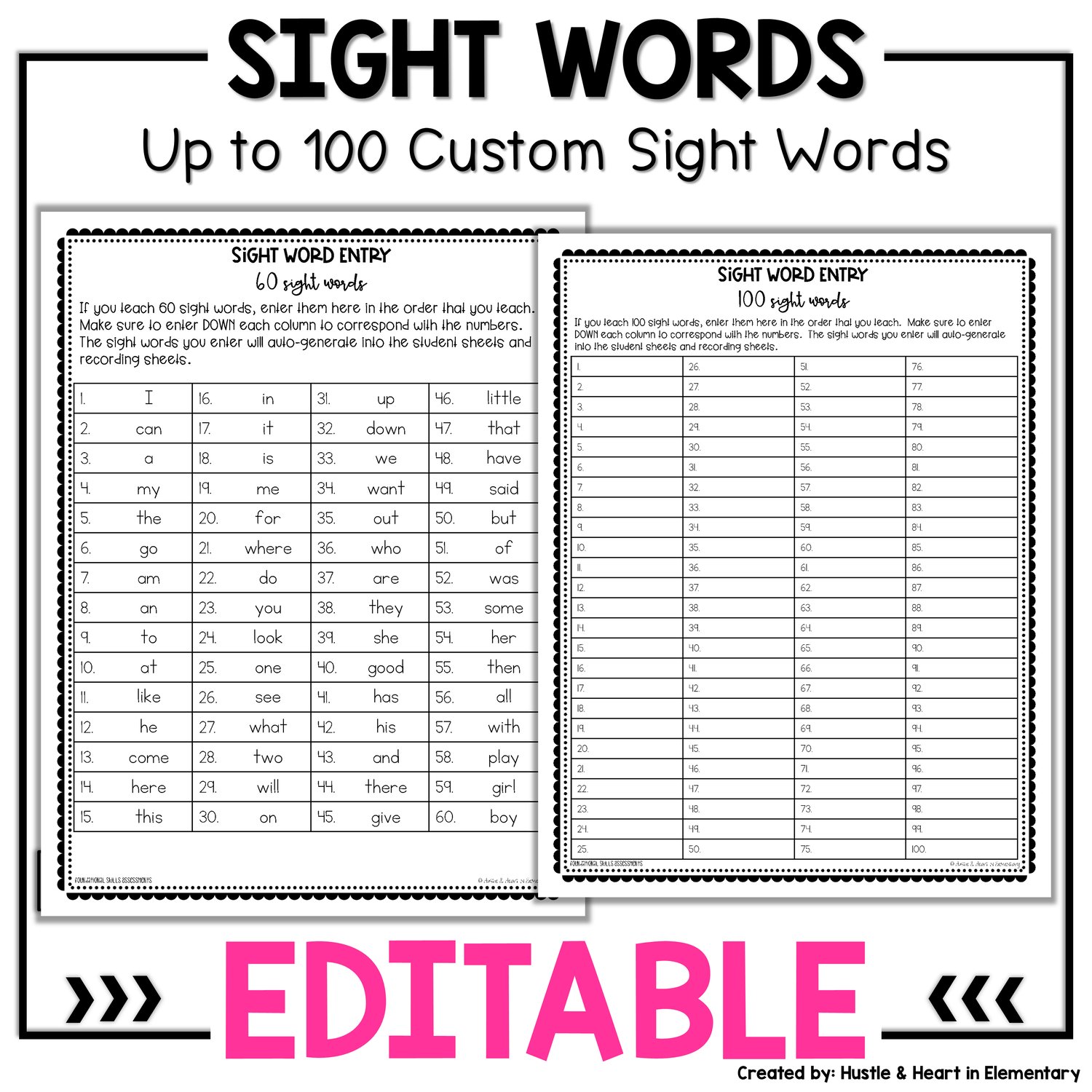 - Sight Word Entry - 100 Words