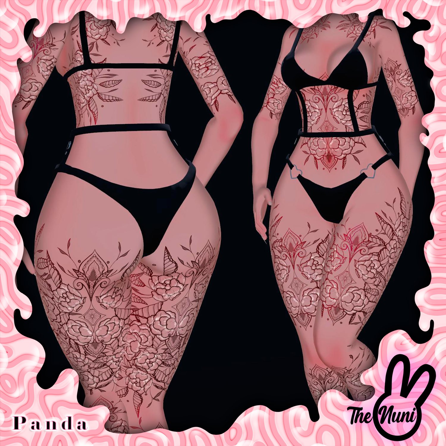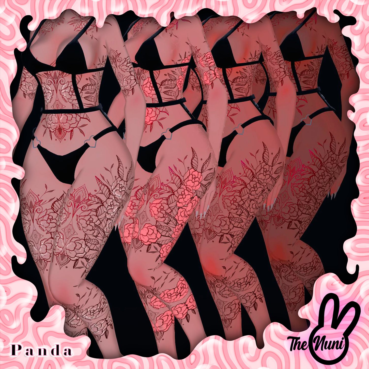 For the Panda texture: 4 Floral tattoo texture w. different skintones