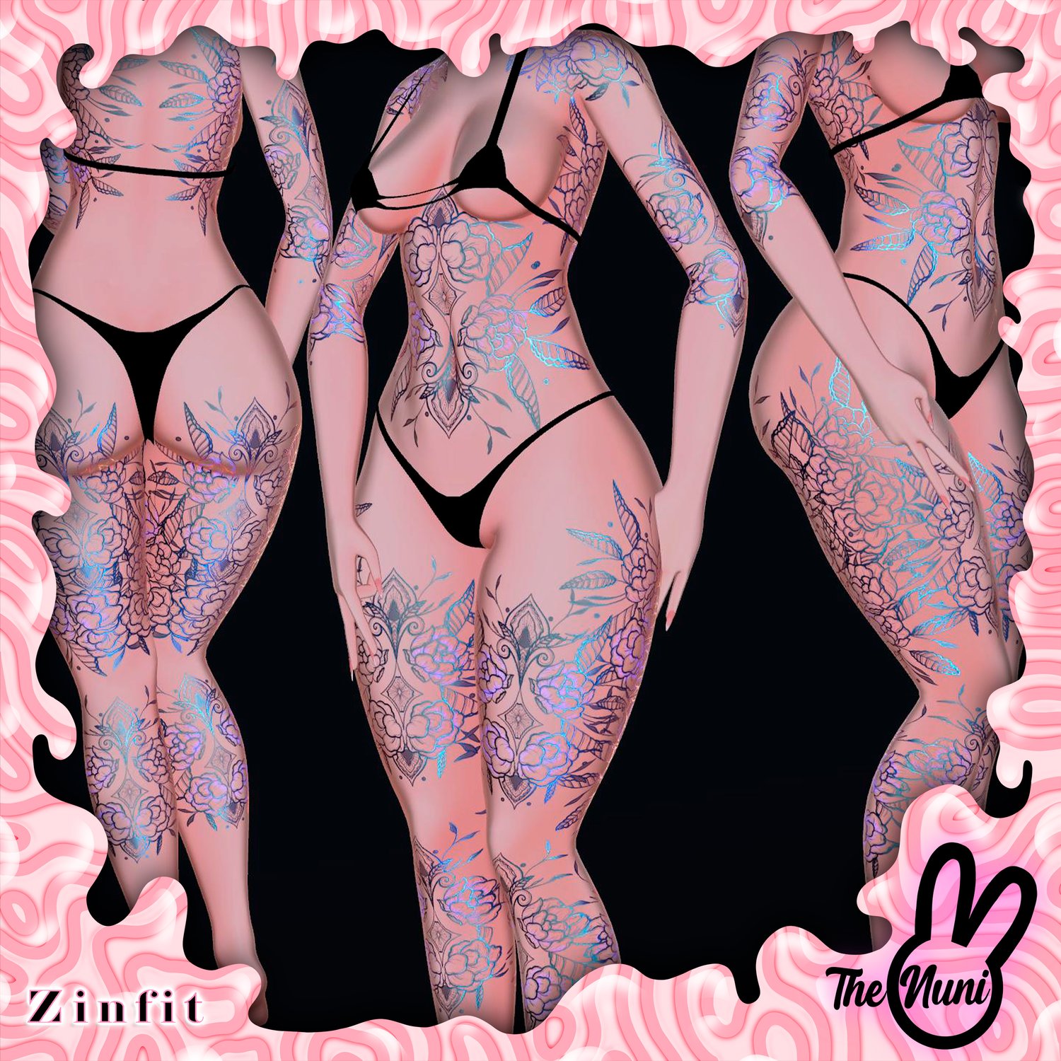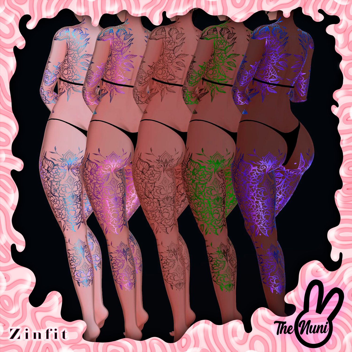 For the Zinfit base: 5 floral tattoo texture w. different skintones,