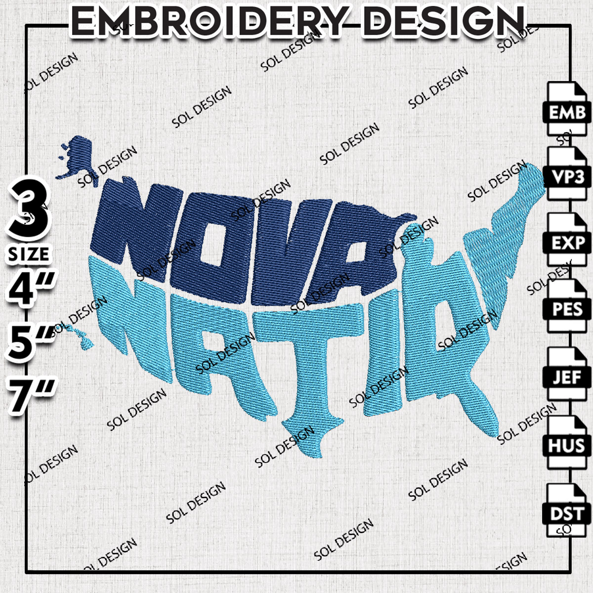 Nova Nation Football Team Word Logo Embroidery Designs, NCAA Villanova Wildcats Machine Embroidery Files, NCAA Logo embroidery designs, NCAA Villanova Logo, Digital Download