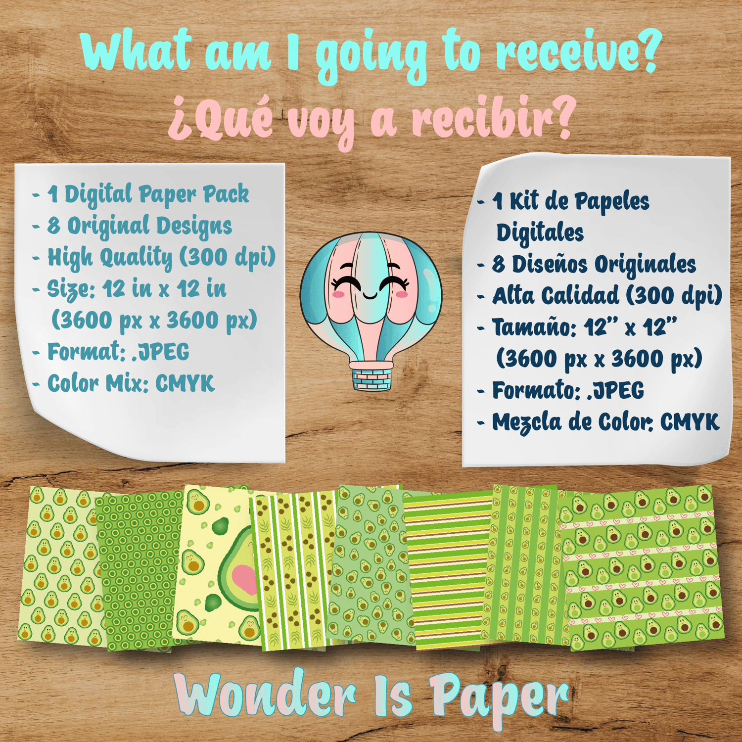 AVOCADOS Digital Papers- High Quality Designs - 8 Patterns - 12 in x 12 in - 30 cm x 30 cm - Ready to Print and Cut