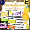 Words used in the sheets: splat, bolt, boom, snap, bang, meow, smack, puff, hush, cuckoo, clatter, fizz, squeak, splash, crunch, howled, ring, purrs, pop, sizzling, crack, hoot, click, drip, slurped, rattle, buzz, tick-tock, crackle, vroomed, screeched, roar, growled, zapped, hiss, poof, yawn, clapped, mumbled, bark, squealed, bang, pow, pop, boing, snap, zip, sniff, quack, snip, splat, crash, moo, tap.