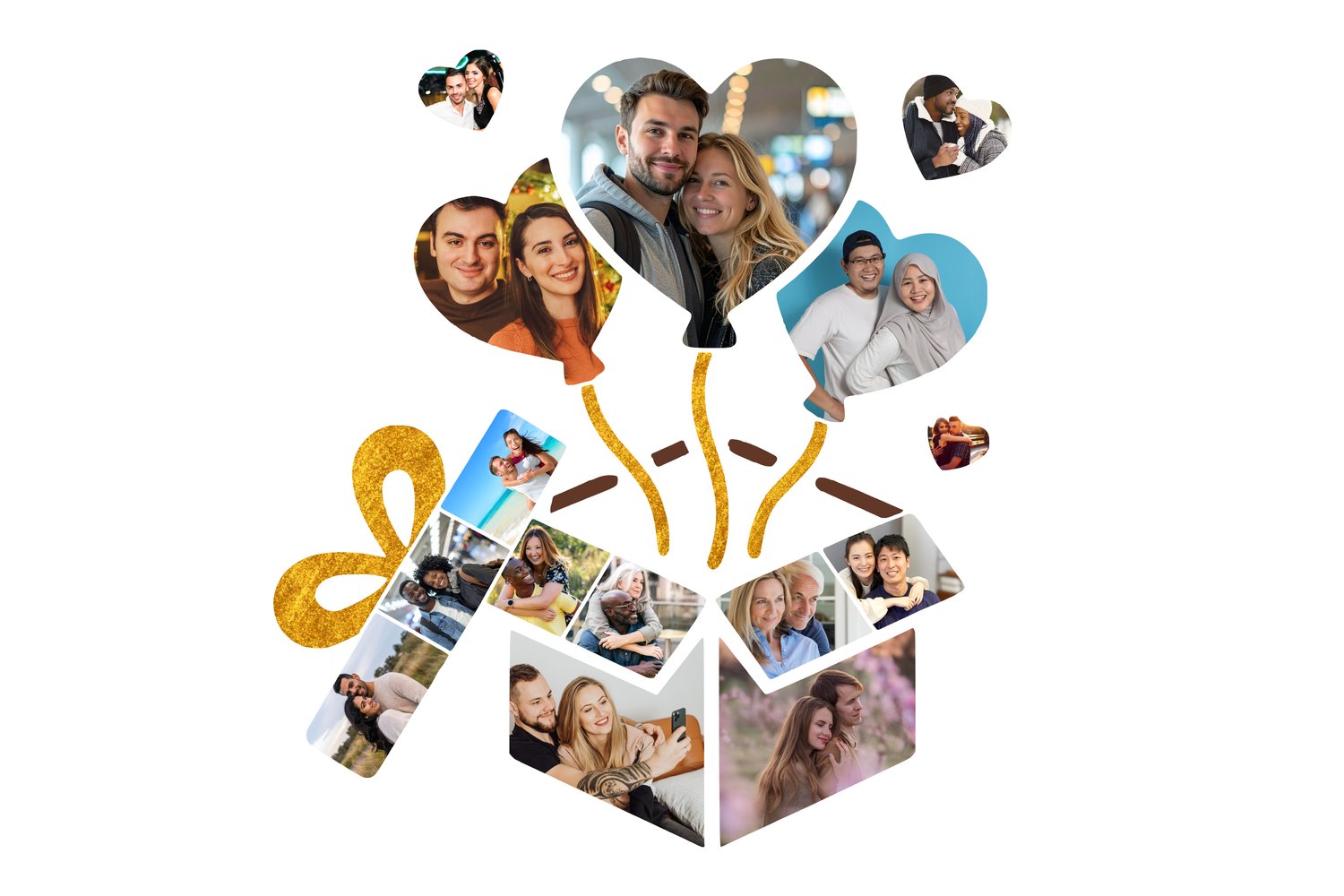 Gift box with heart balloons Editable Photo Collage Template – Instant Digital Download