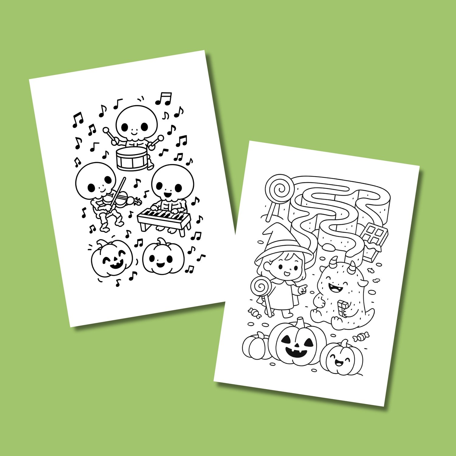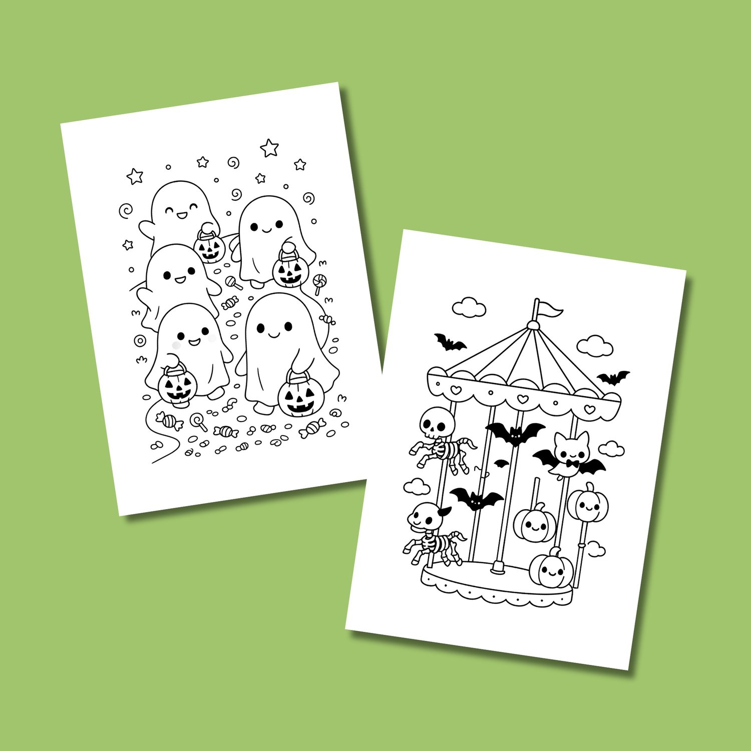 Our full Halloween Coloring Book includes 60 pages of adorable and non-scary illustrations!