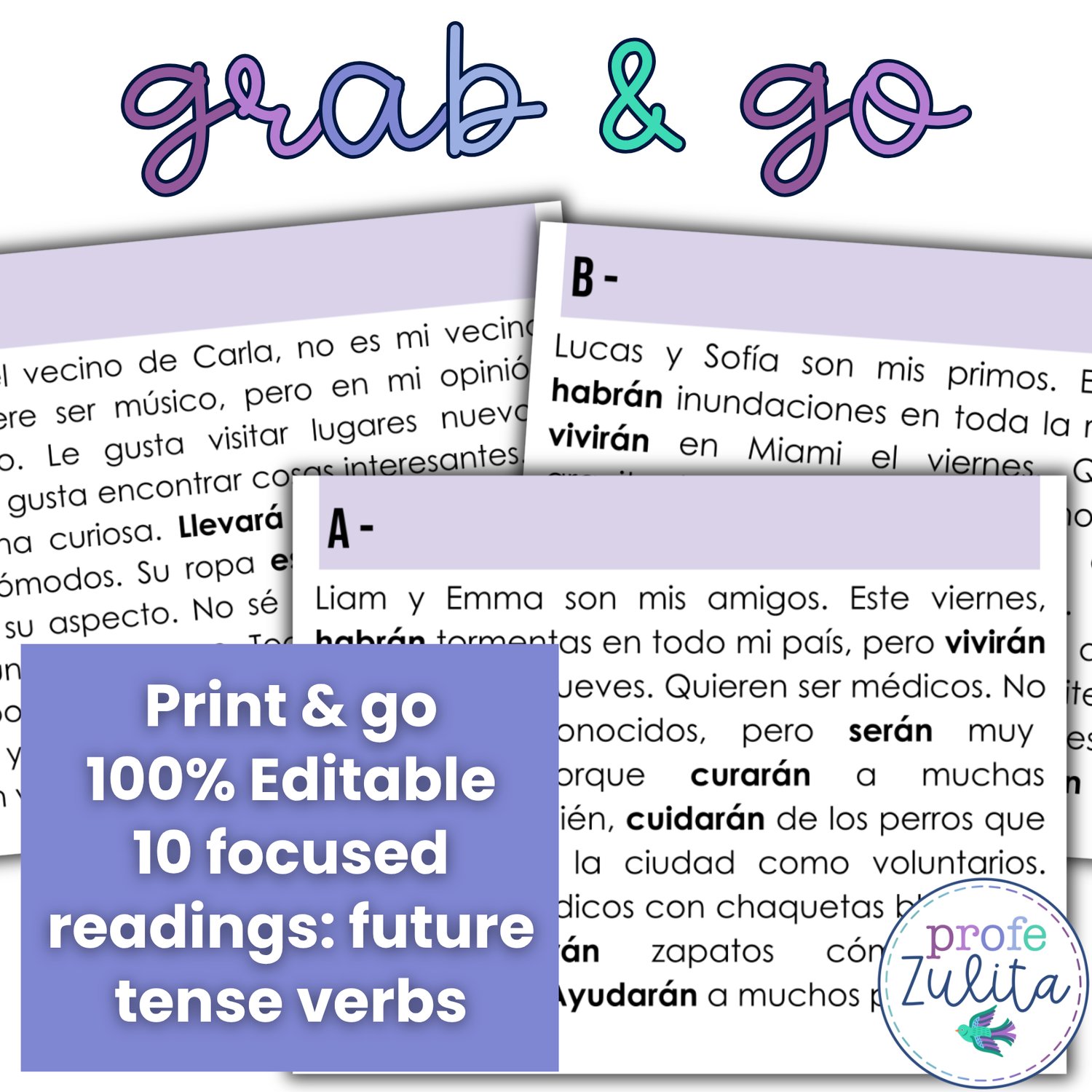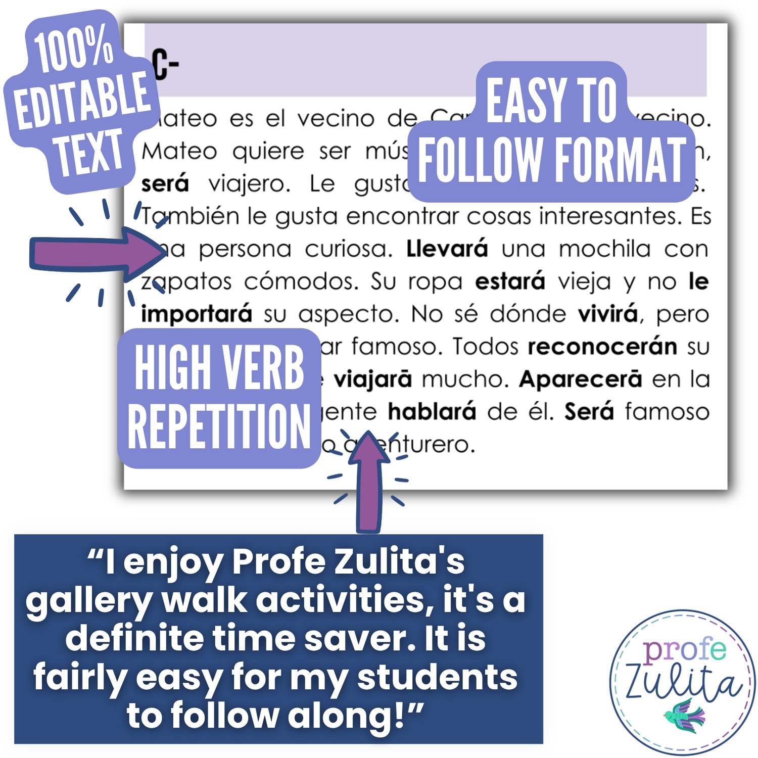 10 Spanish Future Readings - Future Tense Verb Practice Gallery Walk Activity