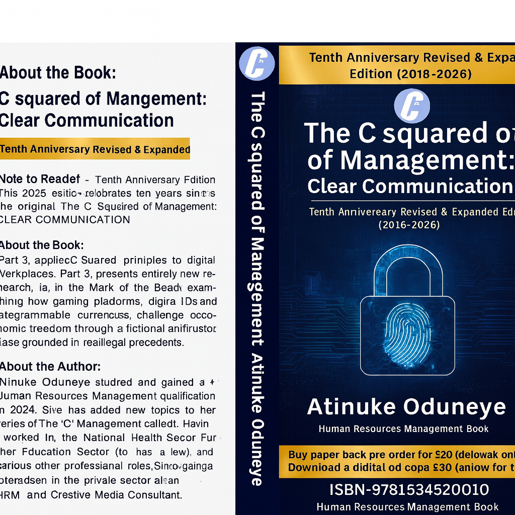 "The C Squared of Management: CLEAR COMMUNICATION" Tenth Anniversary Revised & Expanded Edition (2016–2026) offers both an instant PDF download (£14.99, 91 pages via Payhip at https://payhip.com/b/PQIZj) and a pre-order A5 collectible paperback (£24.99, shipping January 26, 2026).