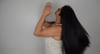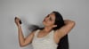 Yusbeli, is different then the typical model type. She is in her thirties and has a family. She also has a head of hair that would jam a pair of clippers. That is why we started the cut a slighty different way. Our trusty barber shaved the top of her head skillfully with a straight edge. No water, no shave foam, and no nicks. As much as she loved her hair, she was all to happy to lose it in order to help her family.