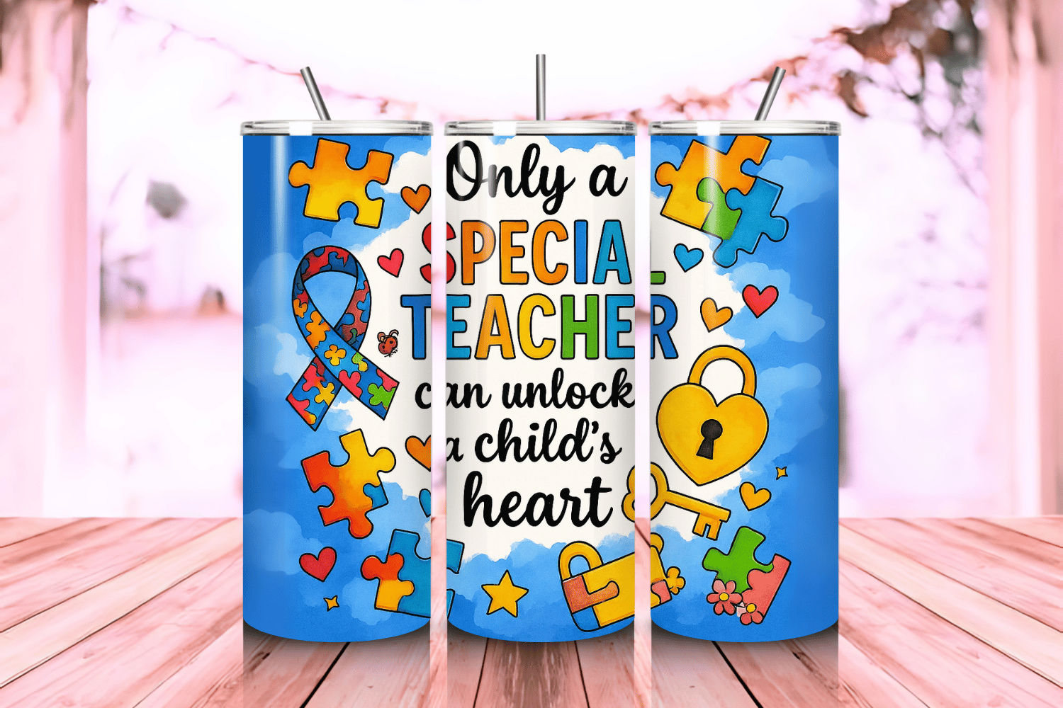 Autism Awareness Tumbler Wrap PNG – 20oz Skinny Sublimation Design with Puzzle Pieces, Heart Icons & Inspirational Quote – Support & Inclusion Theme – 300 DPI Instant Digital Download
