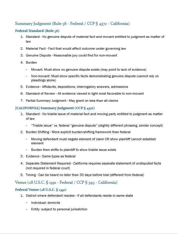 Memorizable frameworks for all testable subjects. California-specific rules included.