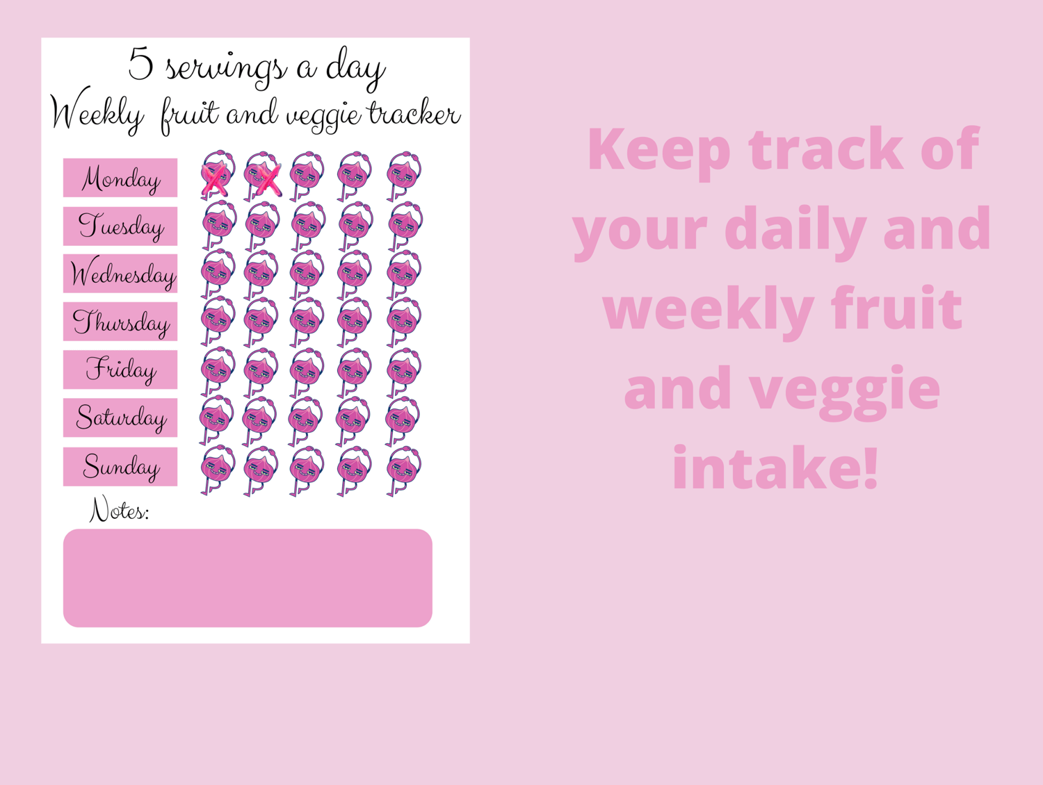 ► Keep track of your daily and weekly fruit and veggie intake. Make sure that you have 5 servings of fruits and veggies a day.