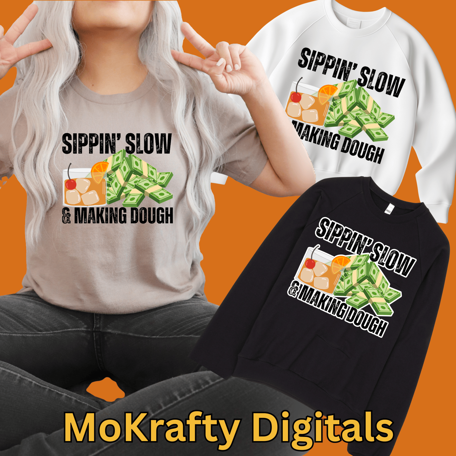 Sippin' Slow & Makin' Dough PNG | Entrepreneur & Hustle Digital Download