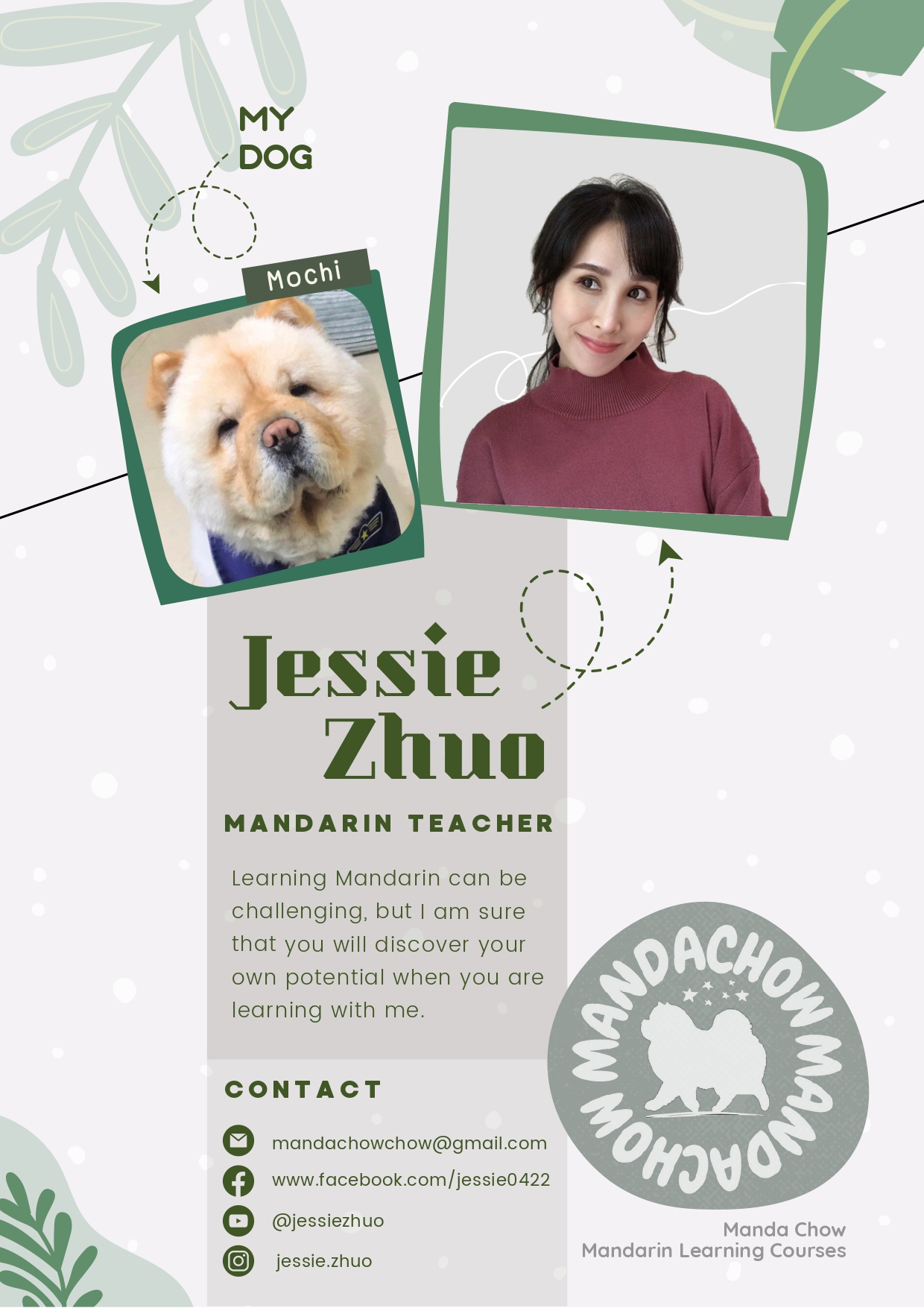 “Learning Mandarin can be challenging, but I am sure that you will discover your own potential when you are learning with me.”