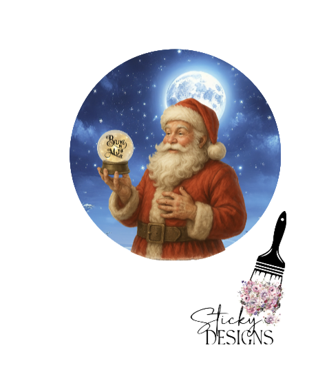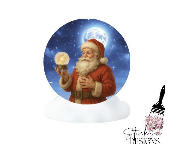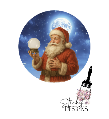 3 designs with wording and without 1 design fits the hanging globe from Woodform Crafts and it can be enlarged to fit the free standing globe, 2 circle designs which are free size, with the same Santa holding a globe. They all come with wording, without wording and a light in the globe of which Santa holds in his hand.
