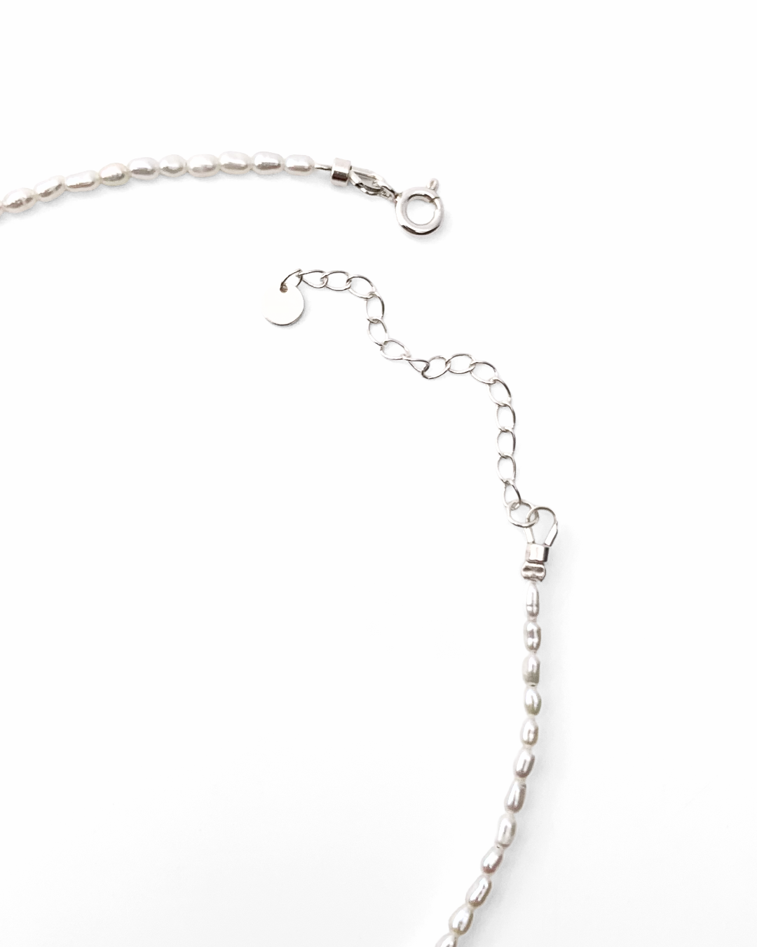 Designed with delicate rice-shaped pearls, finer than those commonly used in rings.