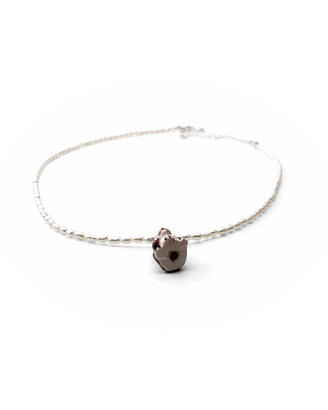 選用纖細的米型珍珠,比一般戒指使用的珍珠更細緻。