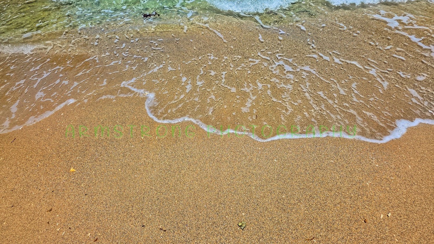 Where the ocean meets the sand on a beach in Okinawa, Japan.