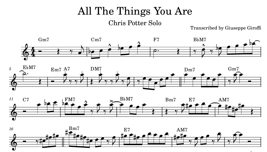 Chris Potter - All The Things You Are - Solo Transcription - Tenor Sax (Bb)
