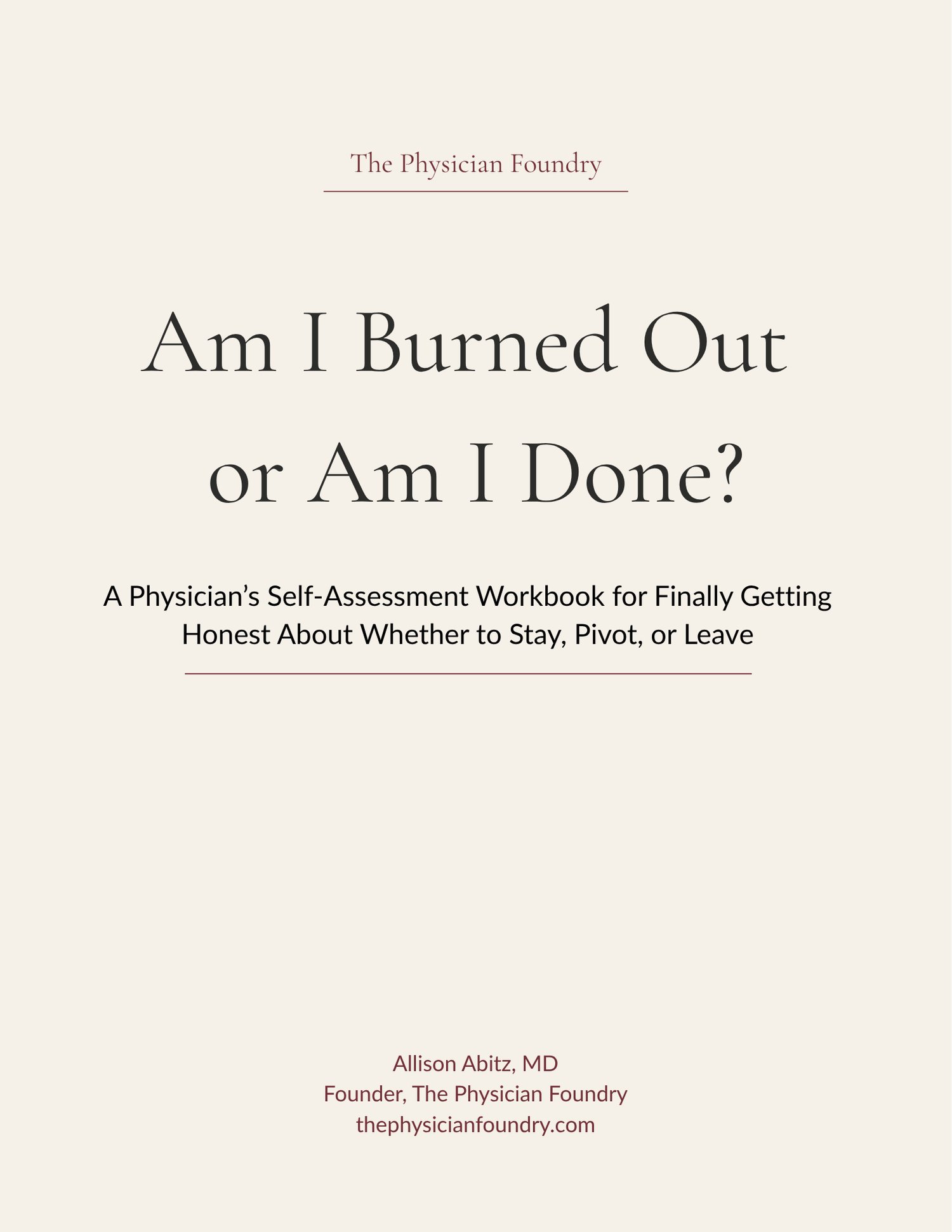 Am I Burned Out or Am I Done? is a 34-page self-assessment workbook designed specifically for physicians who know something needs to change — and are ready to find out what.