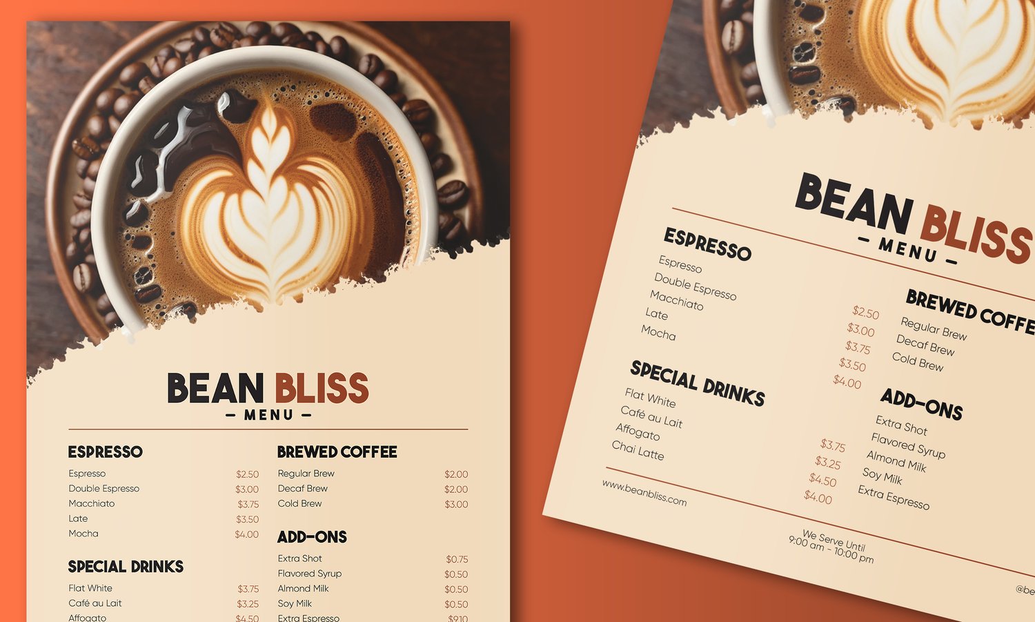 Perfect for café owners, designers, and small businesses looking to present their offerings in a stylish and modern way.