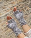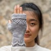 Subtle textures of this cozy pair were inspired by the intricate marble and granite stonework of Venice. The way light and shadow are used as a part of rich decorations of Venetian architecture is applied to the mittens design, adding depth and dimension to the intertwined stitches and nupps.