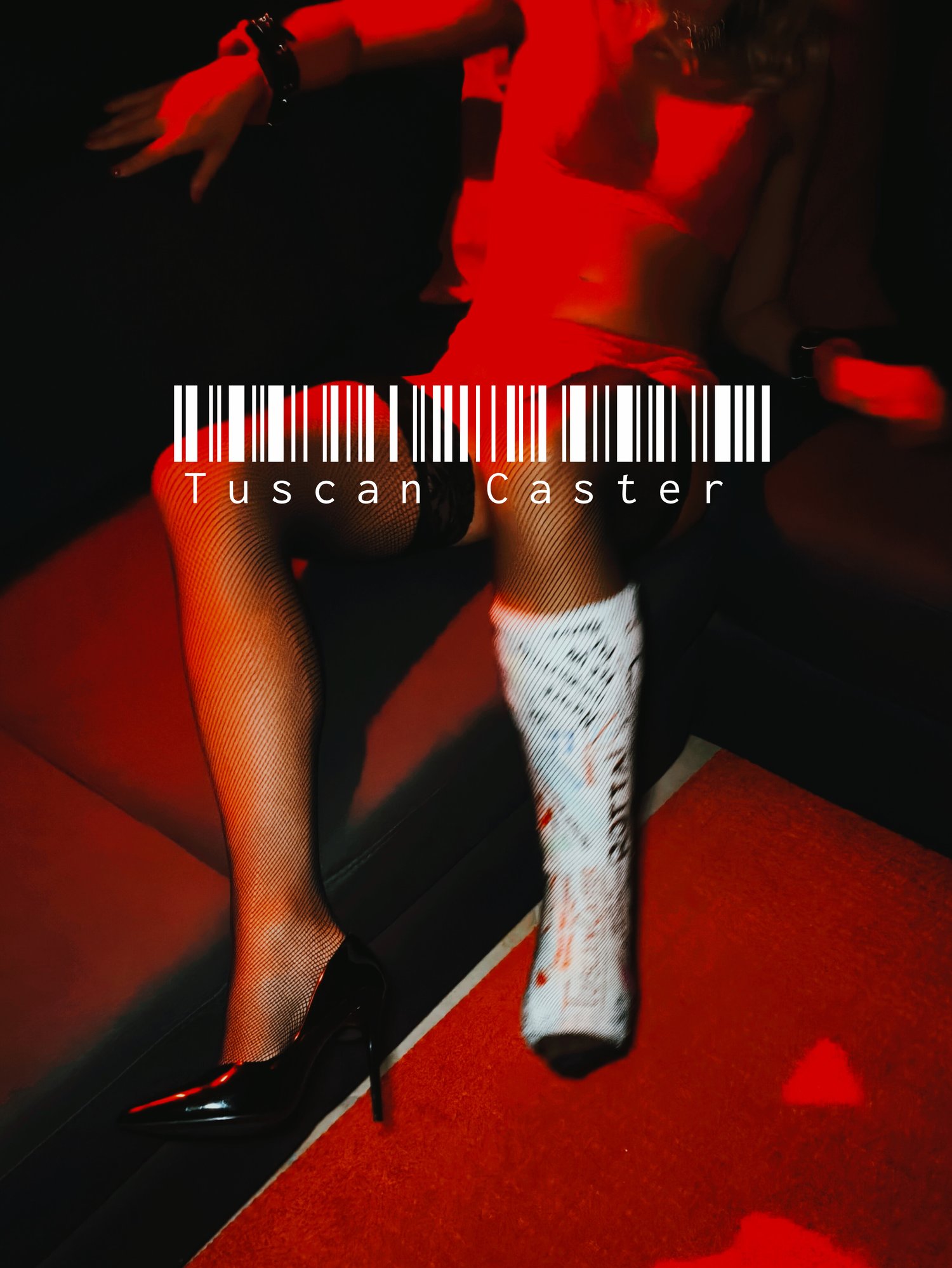 Sul suo gesso SLC Plaster decorato con scritte provocanti, ogni dettaglio racconta una storia di seduzione.