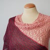 The Rosy Does It shawl is knit from the top-down, starting with a garter tab cast-on. Patterning in the body of the shawl is on both RS and WS rows, and contains simple cables. Stitches used include knit, purl, k2tog, skp, yo, purl 1 below, bunny ears yo, and a centered double decrease. This pattern is suitable for the intermediate to advanced knitter.