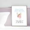 This delightful printable wall art features a cute watercolor tooth fairy paired with an encouraging quote to make brushing teeth a fun activity. The charming design is perfect for little kids and adds a playful touch to any bathroom decor. It's a wonderful way to encourage good dental habits in a whimsical and engaging way.