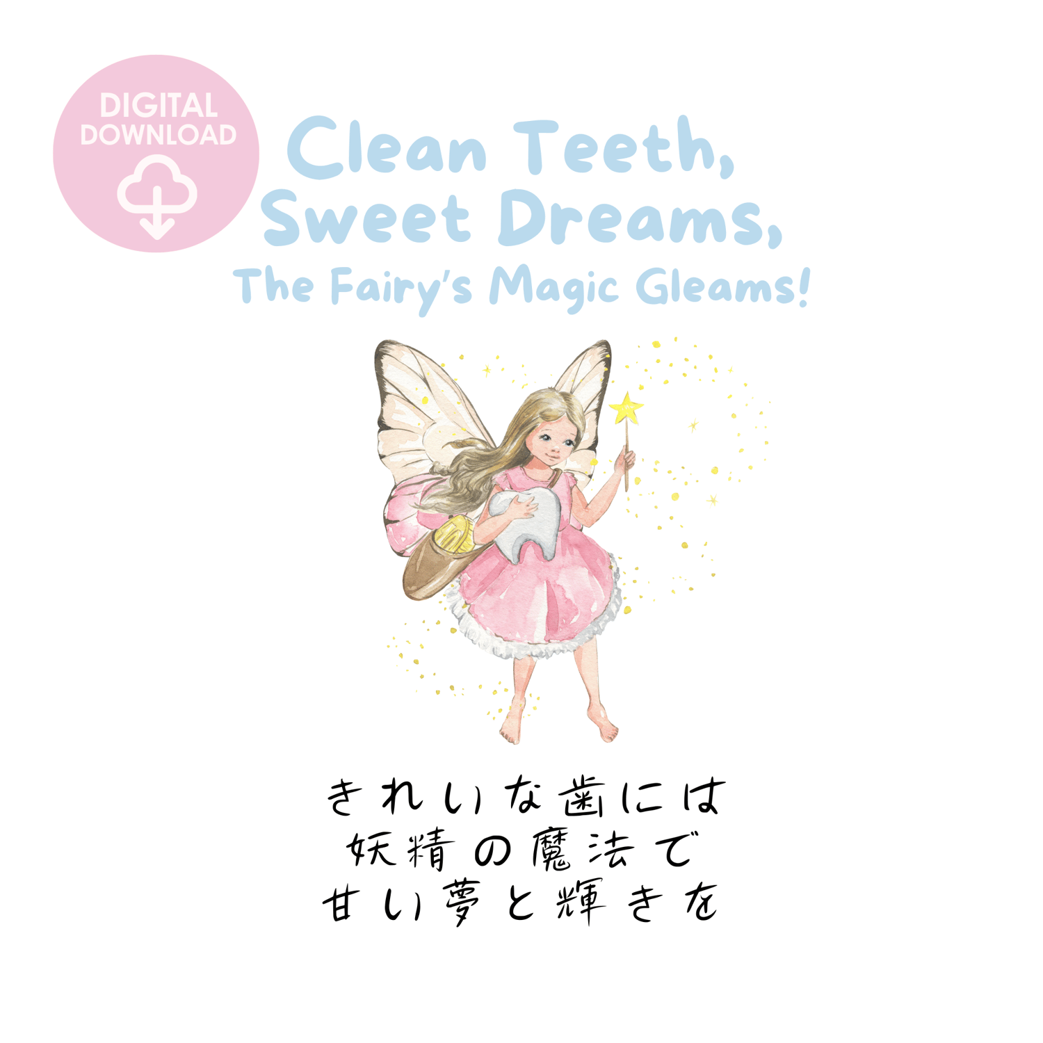 This tooth fairy poster is ideal for parents looking to make tooth brushing a more enjoyable experience for their children. The colorful and friendly tooth fairy illustration captivates young imaginations, while the motivational quote reinforces the importance of dental hygiene. Hang it in the bathroom to transform daily routines into exciting adventures. With this cute tooth fairy drawing, you can inspire your kids to brush their teeth with joy and enthusiasm.
