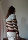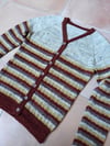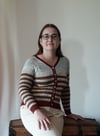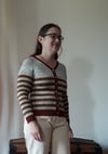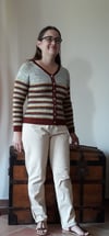 Halwa is a cardigan for women, with a V neckline, raglan sleeves and fancy stripes. It is perfect for fall or spring.