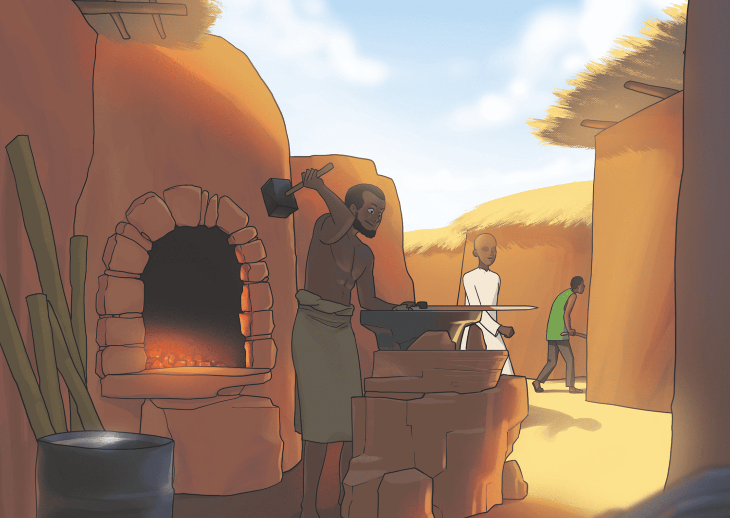 Dans ce deuxième tome, Koffi voyage au Mali du XIIᵉ siècle et y rencontre Soumaoro Kanté, roi du Sosso — un personnage complexe, à la fois forgeron, stratège et chef puissant.